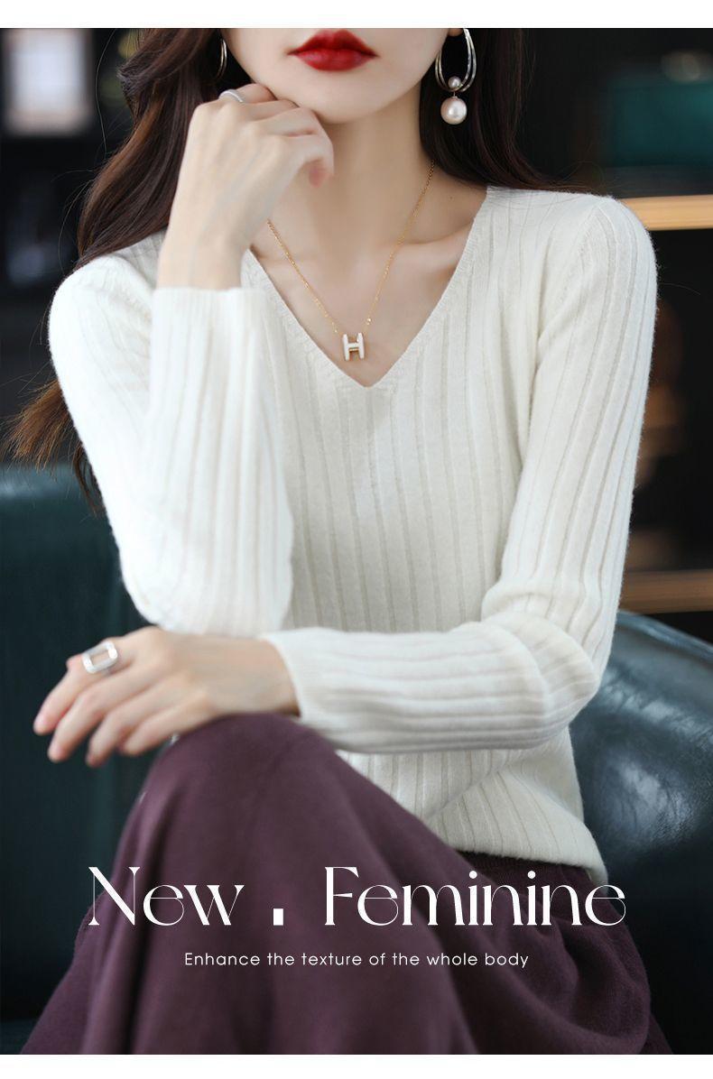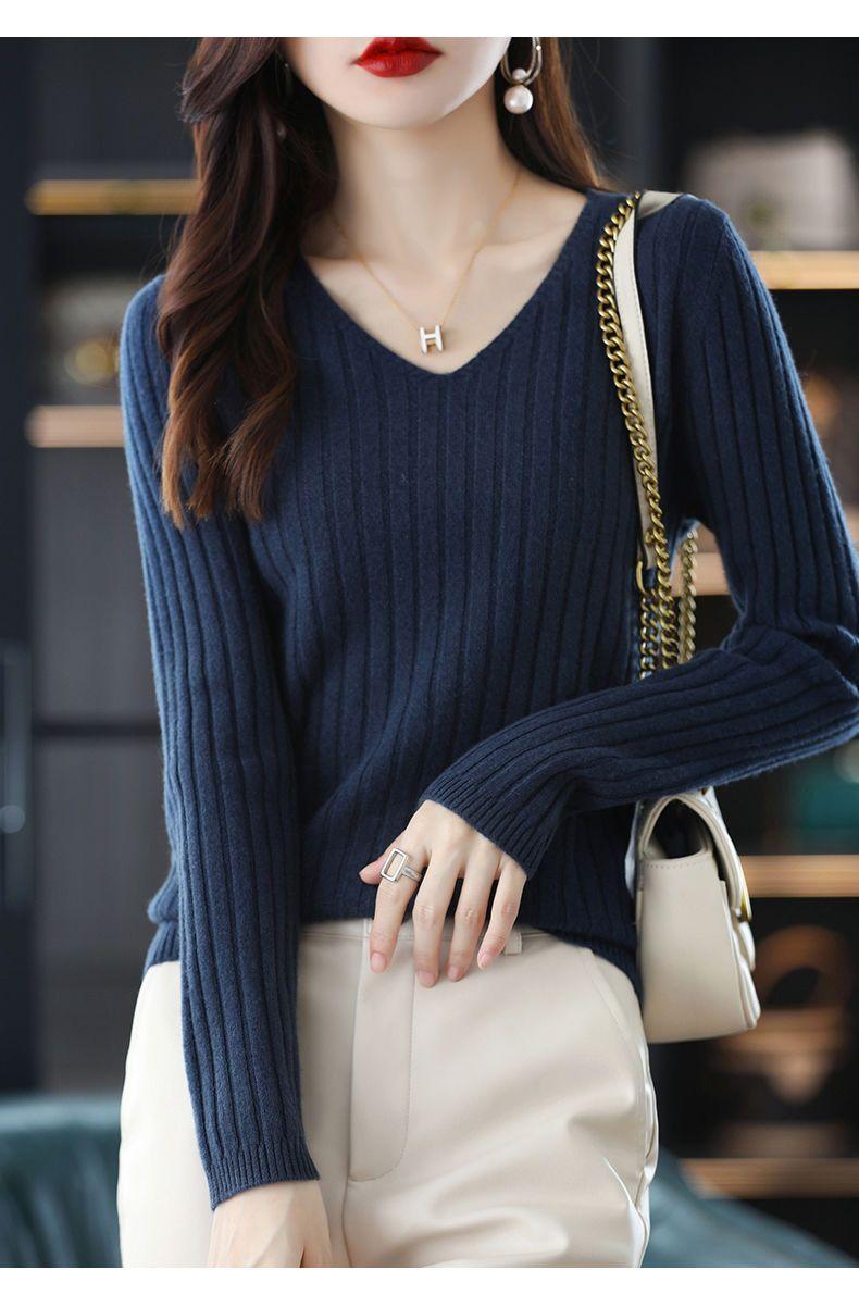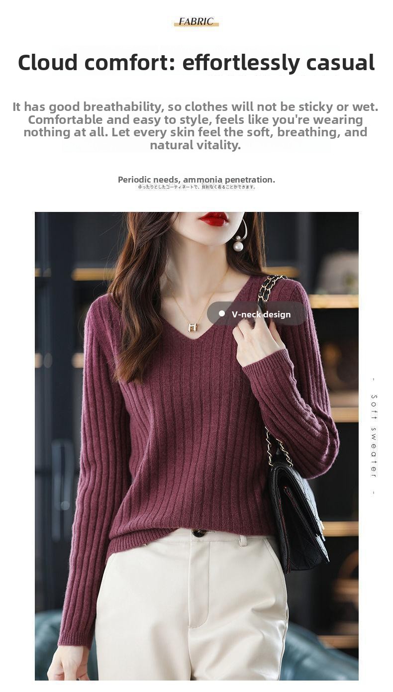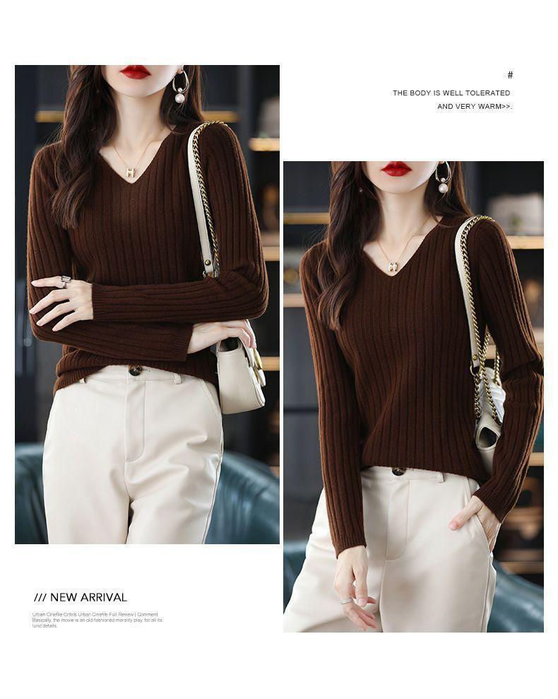 V-Neck Knitted Long-Sleeve Sweater