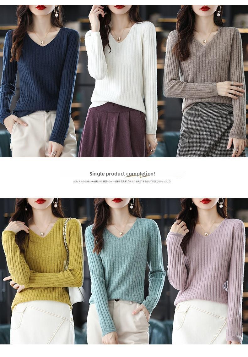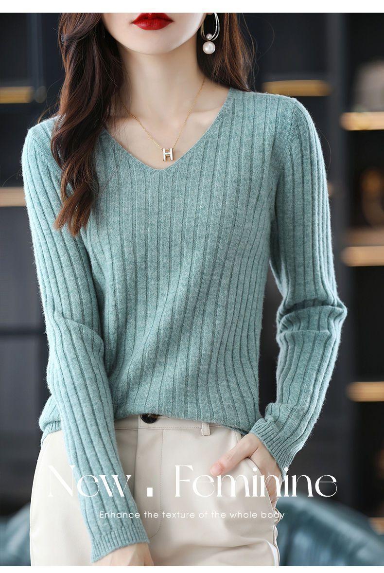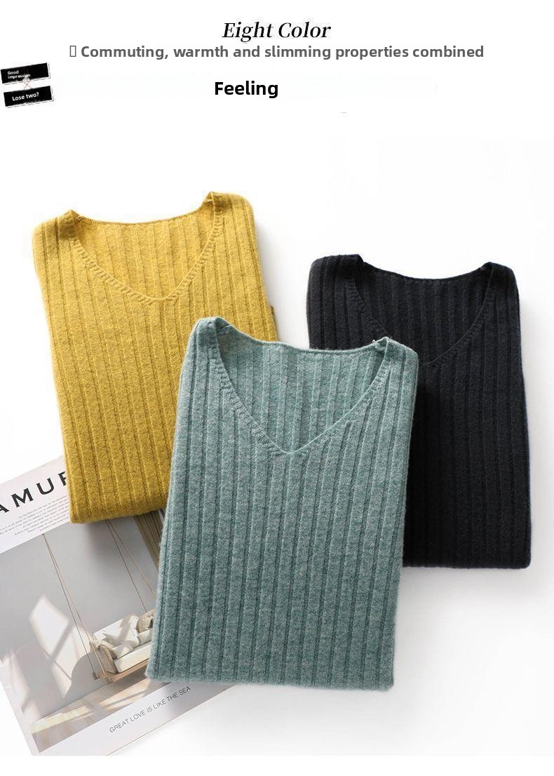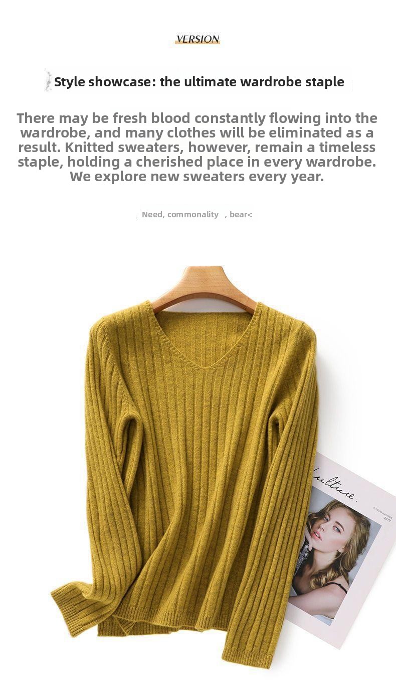 V-Neck Knitted Long-Sleeve Sweater